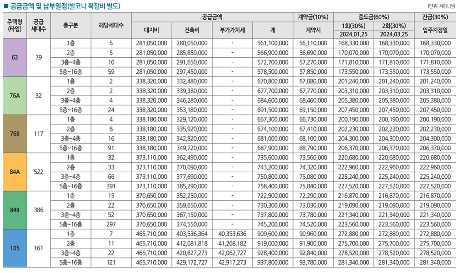 | 76B | 6억 6,730만 원 ~ 6억 8,790만 원 |