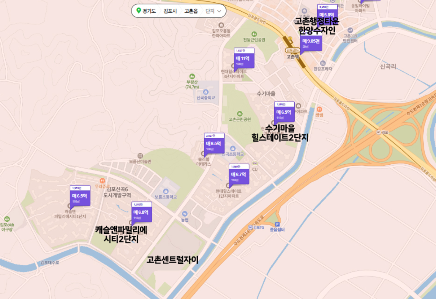 <고촌 센트럴 자이 주변 시세>