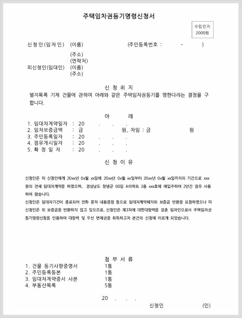 - 임차권등기명령 신청서