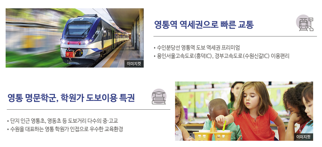 - 학군 : 영동초, 영통중, 영일중, 영덕고, 영통역학원가