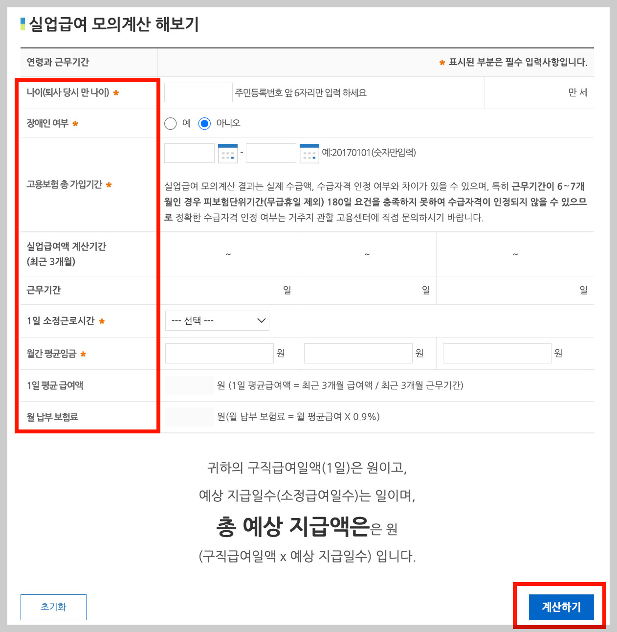 실업급여 계산기로 계산하는 방법