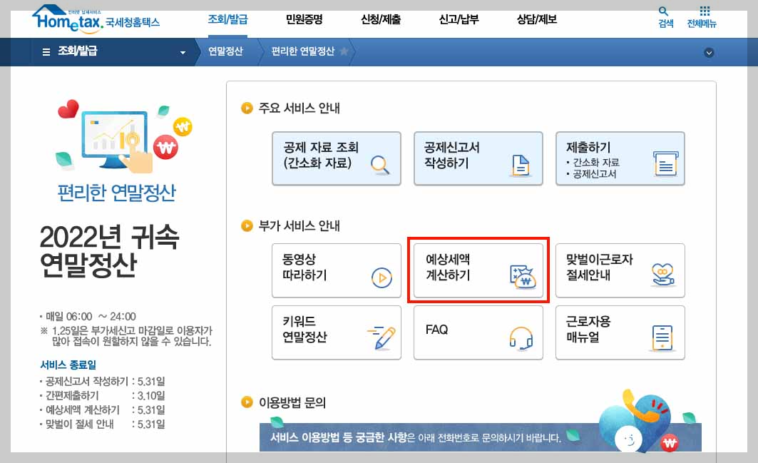 - 부가 서비스 안내 ▶ 예상세액 계산하기 클릭