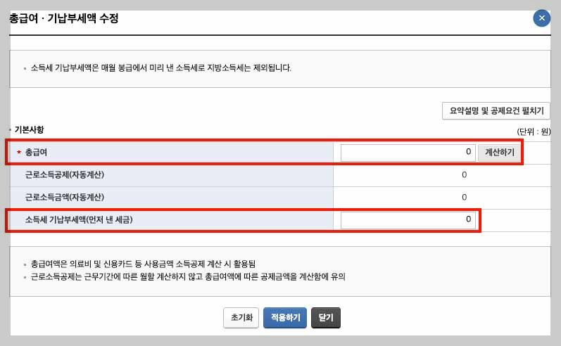 - 소득세 기납부세액 입력 (먼저 낸 세금)