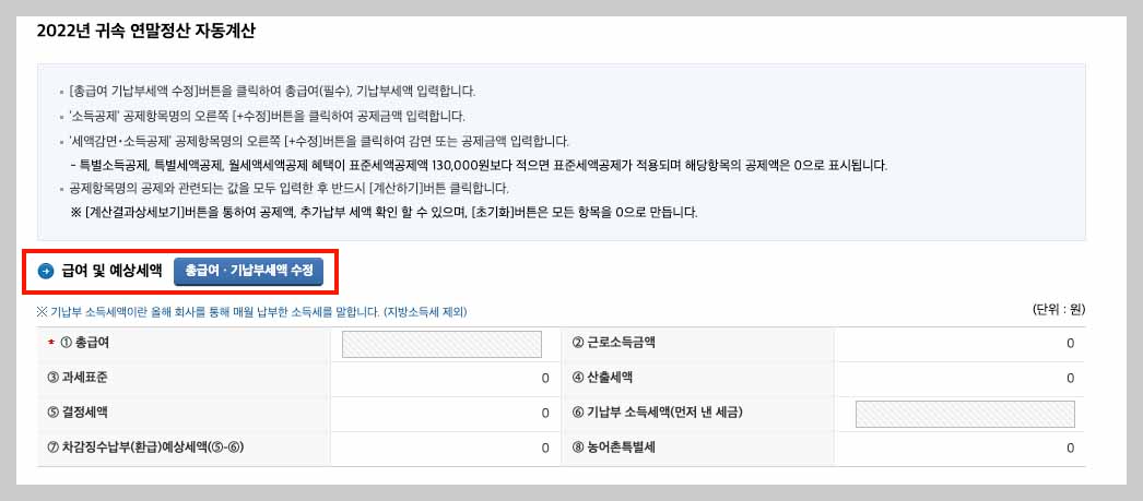 - 연말정산 자동계산 클릭 (2022년 자동계산)
