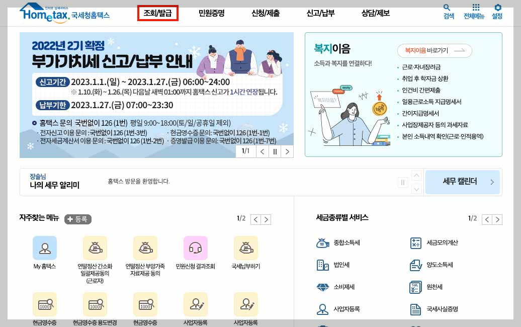 - 국세청 홈택스 홈페이지 접속