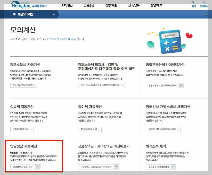 2. 연말정산 자동계산 방법 (홈택스)