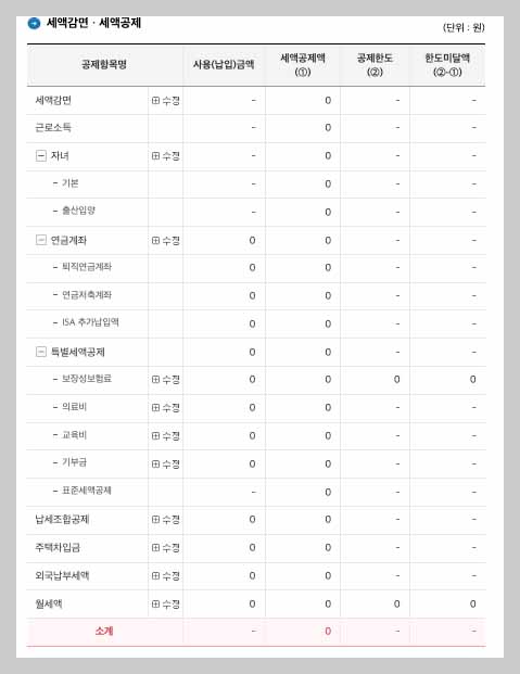 - 소득공제 및 세액감면 공제 항목은 수정 후 재확인
